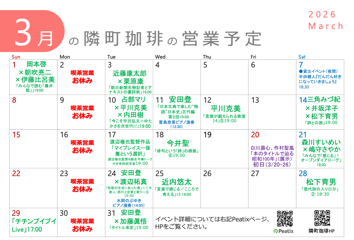 3月の定休日